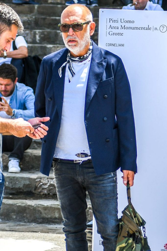 そこで近年、ファッショニスタの中で密かに再ブームになっているアイテムが「スカーフ」。2016年にオープンカラーのシャツや襟を出すトレンドがイタリアで生まれた同時期に、スカーフも流行になった。