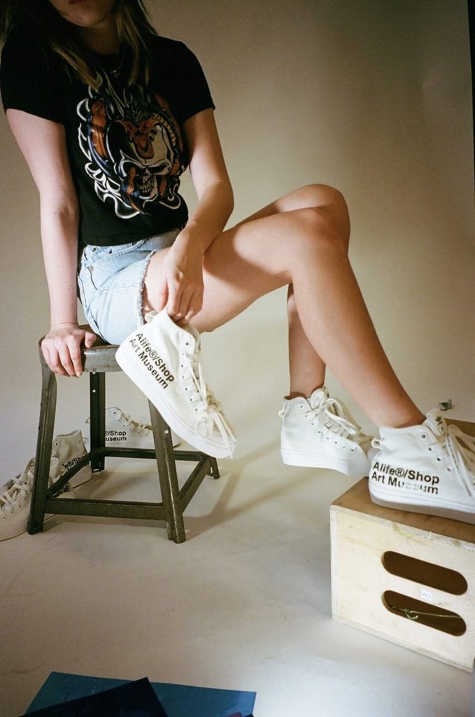 先述したように、今作も、前回と同様にホワイトカラーの「NIZZA HI」をベースに採用。アッパーのサイドに「Alife®/Shop Art Museum」の文字をデザインしている。