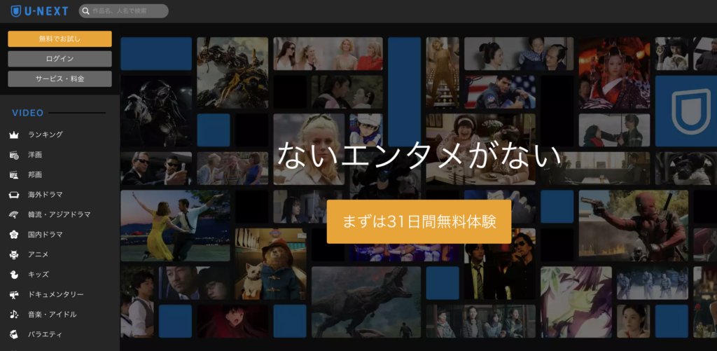 U-NEXTのホームページには、映画やドラマ、アニメ作品が豊富に並べられており、クリックするだけで、いつでも視聴可能。