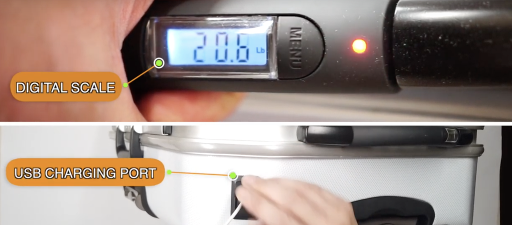 このスーツケースなんと、本体重量を含めた荷物の重さを測る事ができる。これで旅行前のパッキングで「○○kg以内に抑えないといけない、、」といった不安要素が解消される。こちらもどれくらいの精度なのか気になるところである。