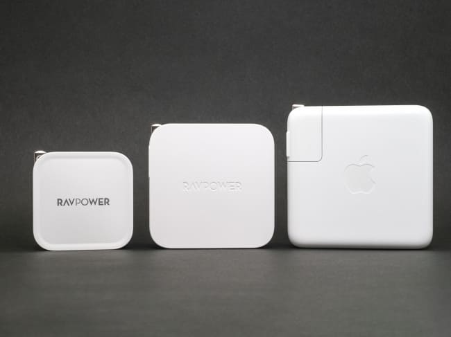Macbook Proの充電器の出力が60Wなのに対し、RAV-Powerの充電器はなんと61W。