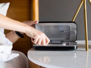 加えてUVライトが上部と下部に付いており、スマホ全体ムラなく紫外線を照射されるので、完全に除菌することが可能だ。
