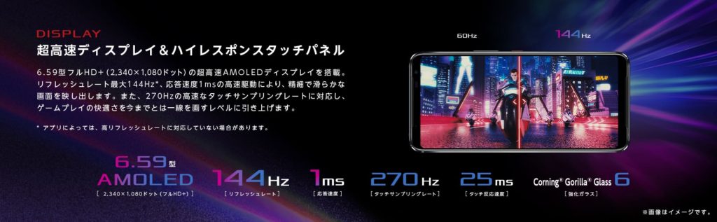 ROGPhone3はこのディスプレイがとんでもないスペックになっているので紹介する。