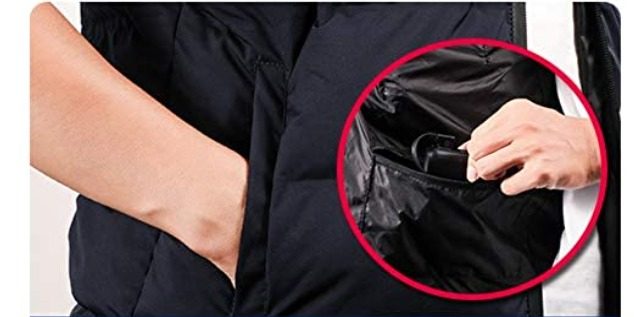 また、3つのポケットがあるのでヒーターのモバイルバッテリーをスマートに収納可能だ。