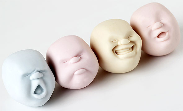 握ることにより表情を変わり、面白グッズとして販売されていたが、ストレス解消としても役立つ。