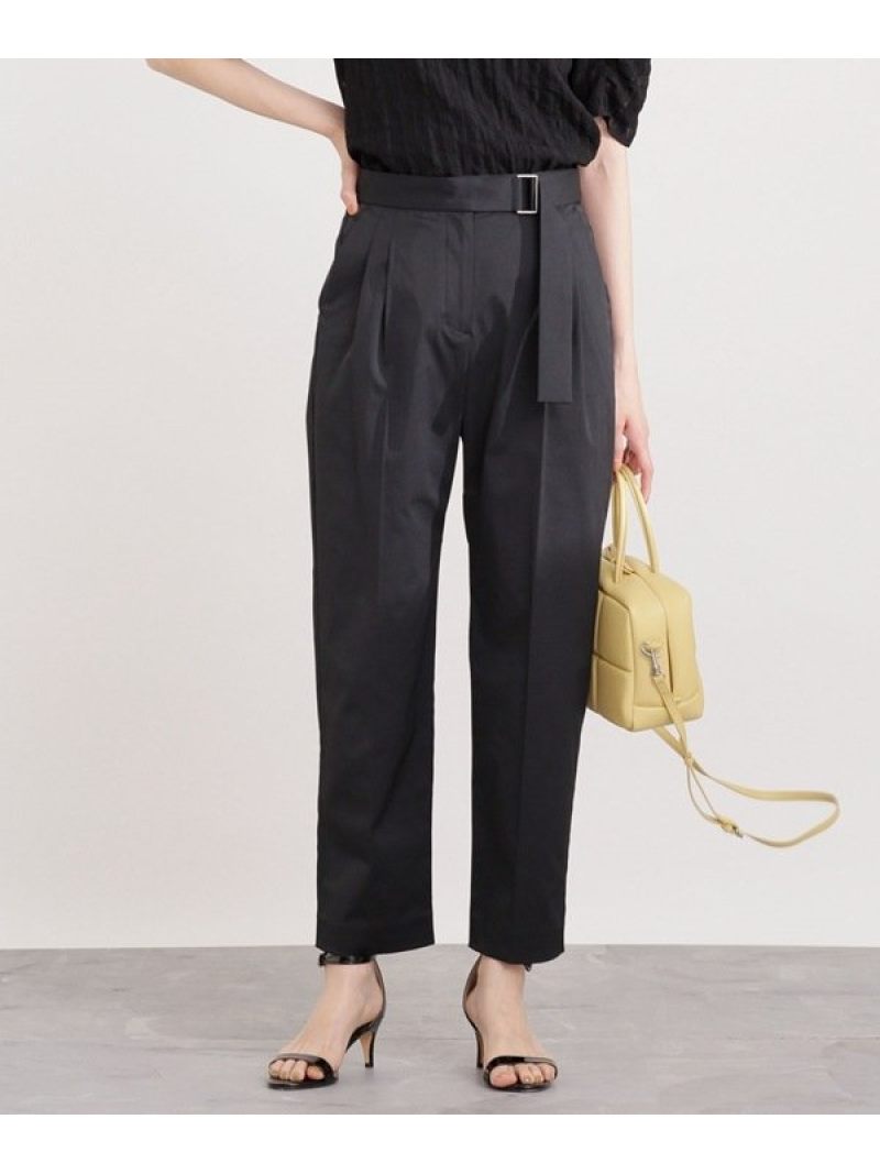 小尻に見えるように裾に向かってテーパードさせたパターンにより美脚効果が発揮するテーパードパンツ。